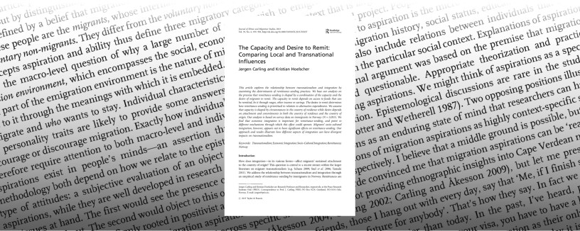 Carling, Jørgen and Hoelscher, Kristian (2013) ‘The Capacity and Desire to Remit: Comparing Local and Transnational Influences.’ Journal of Ethnic and Migration Studies, 39(6): 939-958.