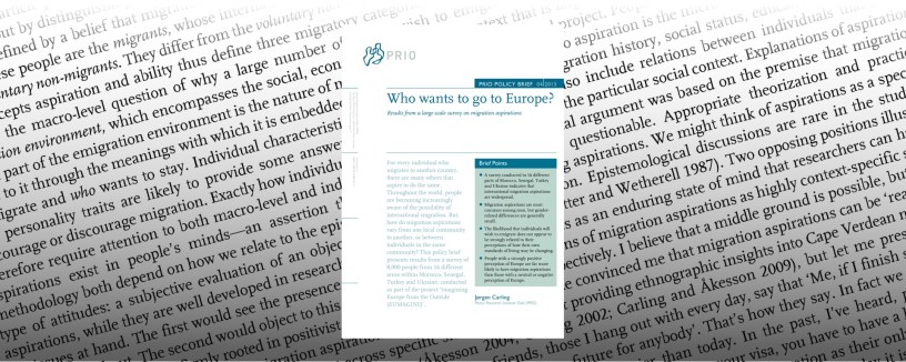 Carling, Jørgen (2013) Who wants to go to Europe? Results from a large-scale survey on migration aspirations. PRIO Policy Brief, 2013/4. Oslo: Peace Research Institute Oslo (PRIO).