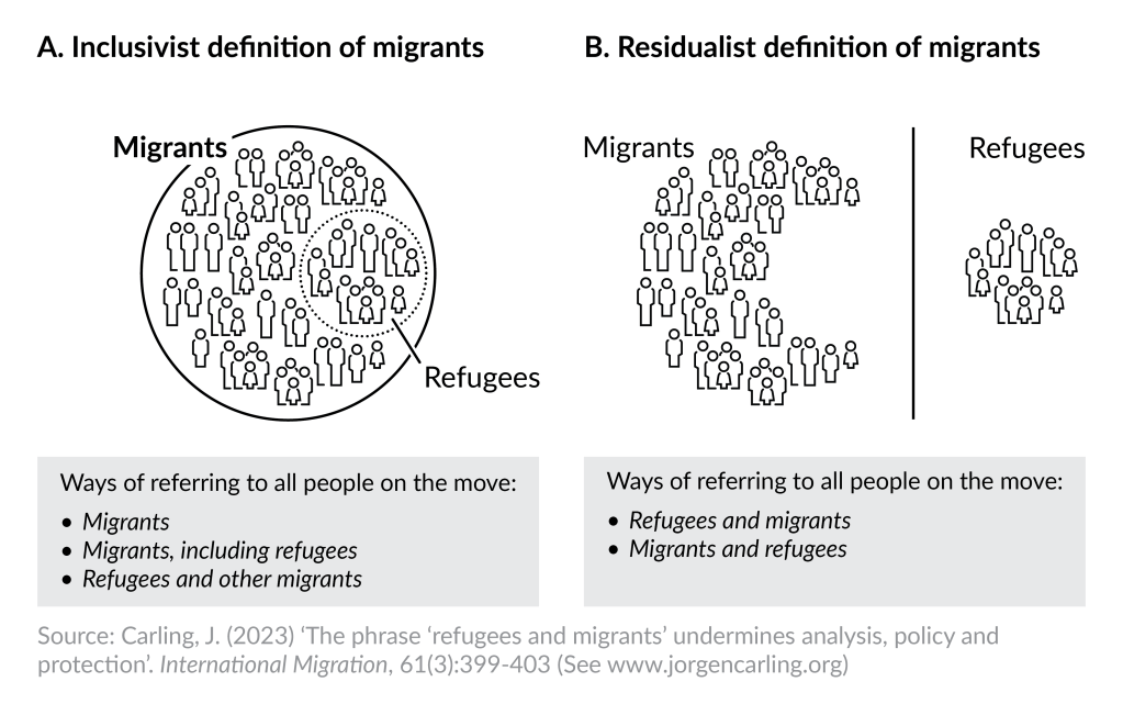 The article includes a figure that visualizes the two definitions of ‘migrants’. The problem with the phrase ‘refugees and migrants’ is that it promotes the residualist definition despite its harmful consequences for people on the move.